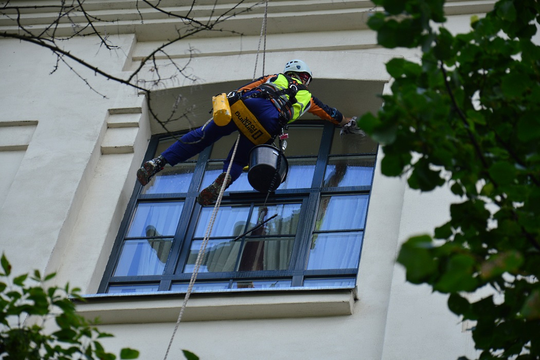 Wykonujemy czyszczenie i mycie w miejscach trudno dostępnych - wymagających pracy w dostępie linowym.